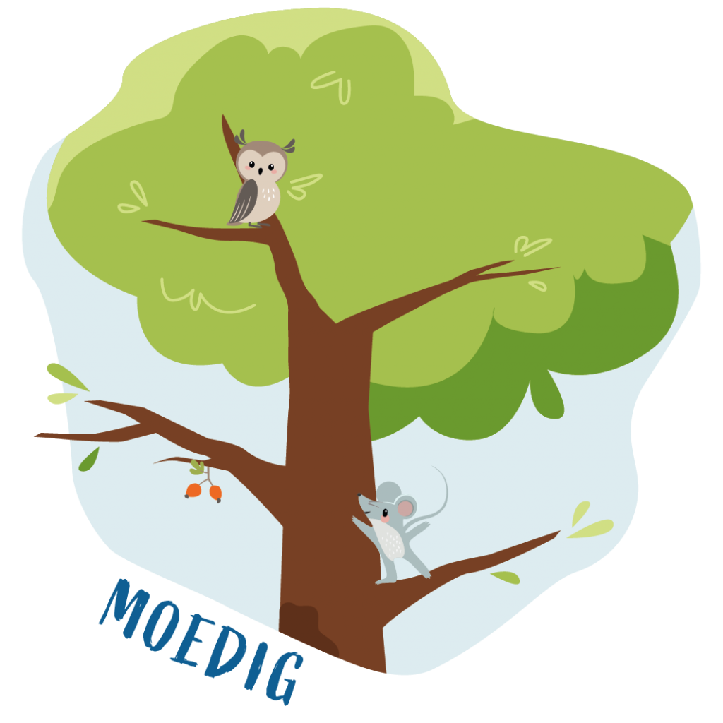 Kinderen en hun netwerk zijn heel moedig in het afleggen van hun eigen weg, met vallen en opstaan. Ook medewerkers zullen in hun opdracht soms tegenwind voelen, waarin het moed vraagt om stevig te blijven staan of weer overeind te komen. In moed zit het durven innemen van een stem en de daadkracht die soms nodig is om tot verandering te komen. Moed is opkomen voor iets waar je volledig achter staat en weer kunnen loslaten als een andere weg gekozen wordt.